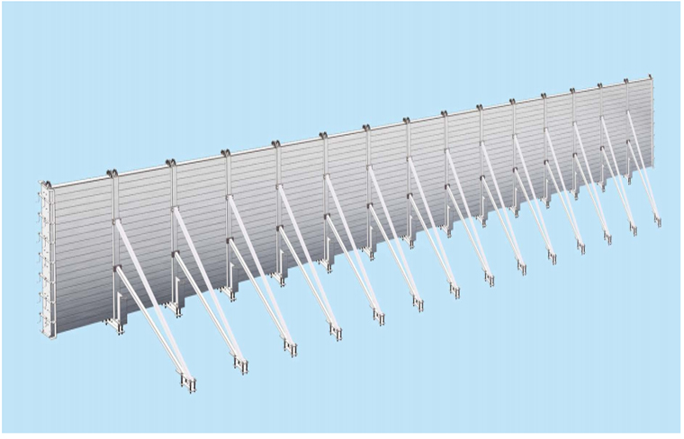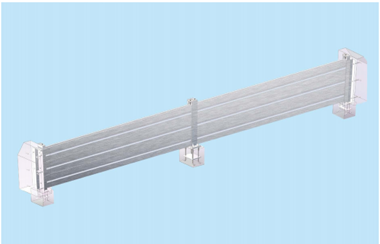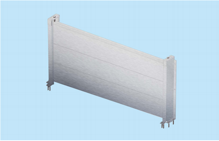 擋板及固定立柱材質為鋁合金 6063-T6,防水密封膠條為三元乙丙,預埋件為不銹鋼材質。 最大擋水高度 1200mm 立柱最大間距 6000mm