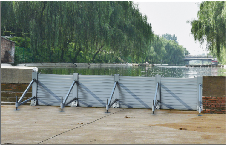 擋板及固定立柱材質為鋁合金 6063-T6,防水密封膠條為三元 最大擋水高度 4000mm(依據擋水高度,可分為輕型,中型,