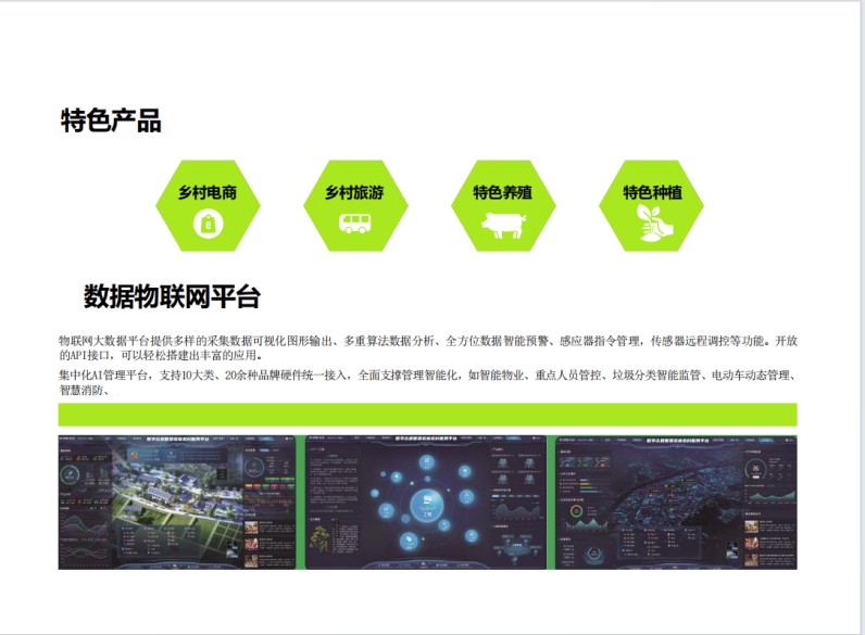 大數(shù)據(jù)物聯(lián)網(wǎng)平臺(tái) 物聯(lián)網(wǎng)大數(shù)據(jù)平臺(tái)提供多樣的采集數(shù)據(jù)可視化圖形輸出、多重算法數(shù)據(jù)分析、全方位數(shù)據(jù)智能預(yù)警、感應(yīng)器指令管理,傳感器遠(yuǎn)程調(diào)控等功能。開放的API接口,可以輕松搭建出豐富的應(yīng)用。 集中化AI管理平臺(tái),支持10大類、20余種品牌硬件統(tǒng)一接入,全面支撐管理智能化,如智能物業(yè)、重點(diǎn)人員管控、垃圾分類智能監(jiān)管、電動(dòng)車動(dòng)態(tài)管理、 智慧消防