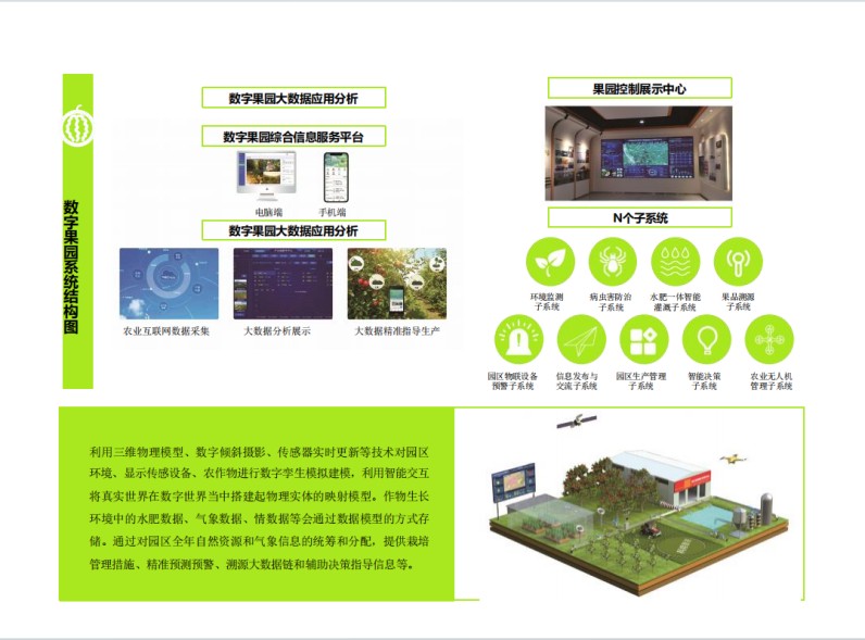 數(shù)字果園是指采用物聯(lián)網(wǎng)、遙感、大數(shù)據(jù)、人工智能、5G、智能裝備與機(jī)器人等新一代信息技術(shù),通過對(duì)設(shè)施、裝備、機(jī)械等進(jìn)行遠(yuǎn)程控制、全程自動(dòng)化控制或機(jī)器人自主控制、完成果園及農(nóng)場(chǎng)生產(chǎn)作業(yè)的一種全天候、全過程、全空間的無人化生產(chǎn)作業(yè)模式。